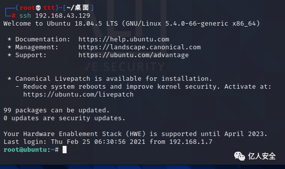 然后用kali连接ubuntu