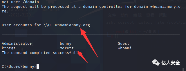 net user /domain # 查看域用户