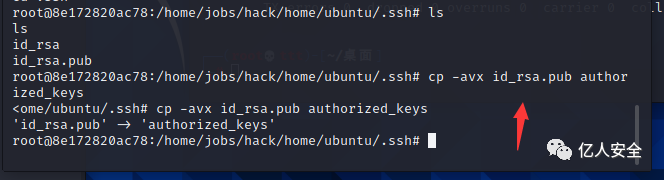 命令:cp -avx /hack/home/ubuntu/.ssh/id_rsa.pub /hack/home/ubuntu/.ssh/authorized_keys(我这里是切换到.ssh目录下复制的 因为我直接全路径不知道为什么失败)(后来发现是hack前面不需要/)