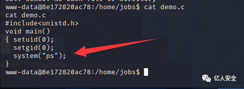 然后通过查看demo.c文件发现 是调用的ps命令且并未使用绝对路径