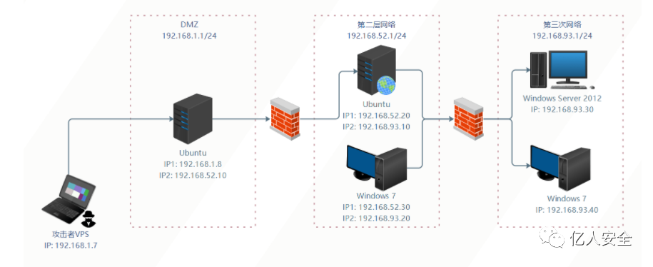 DMZ区IP段为192.168.43.1/24 因为我这里是开热点打的 图用的网上的