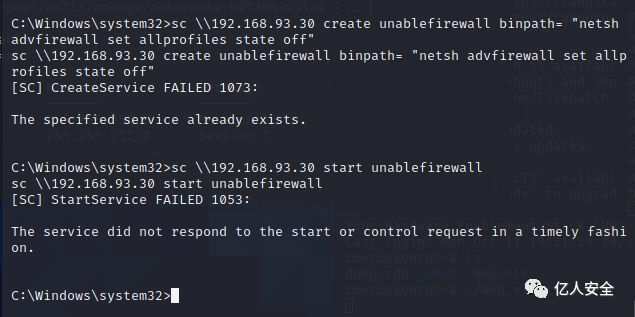 sc \192.168.93.30 start unablefirewall
