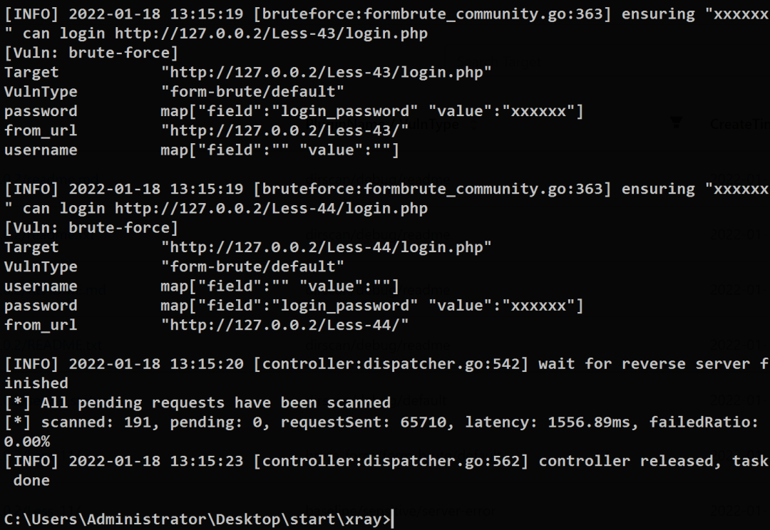 .\xray_windows_amd64.exe webscan --basic-crawler http://127.0.0.2 --html-output crawler.html这会对目标网站进行站内连接的爬取并主动对其进行漏洞扫描