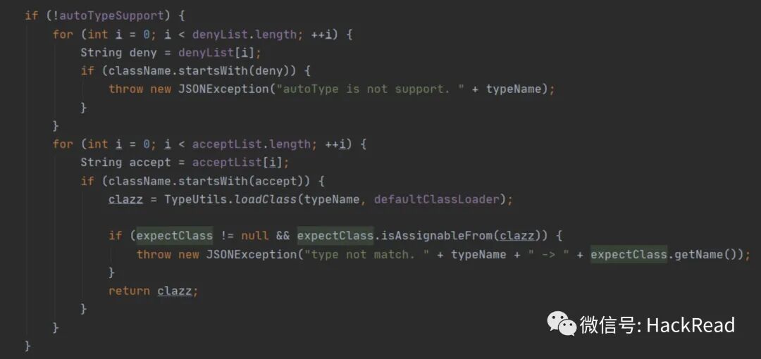 我们在上文”#开启autotype”已经分析过,48版本以后会经过如下代码三个变量的检测判断是否可以loadClass,那么这里就创造了expectClassFlag变量这一条件