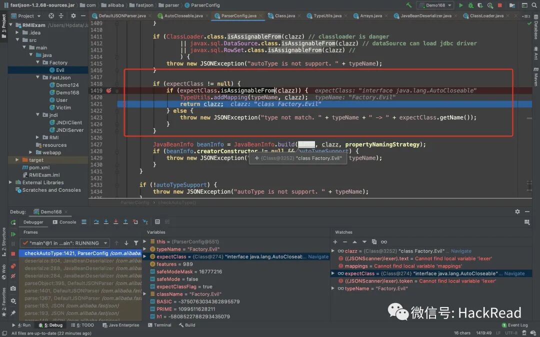 依然是解析的入口com/alibaba/fastjson/parser/DefaultJSONParser.java跟起