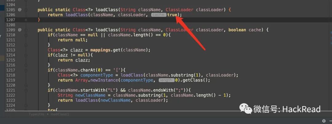 言归正传,我们继续向下分析1.53的TypeUtils.loadClass流程(如下代码)