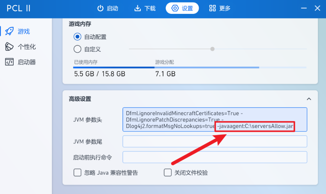 启动器命令行参数里加上这行: