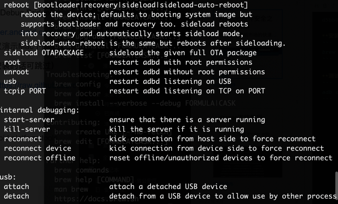 安装adb brew install android-platform-tools 测试是否安装成功 adb devices