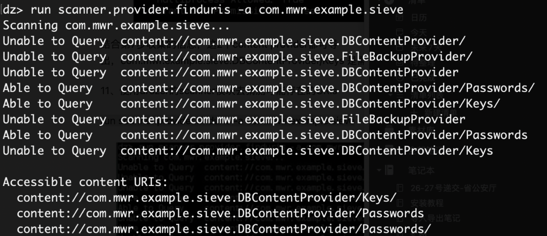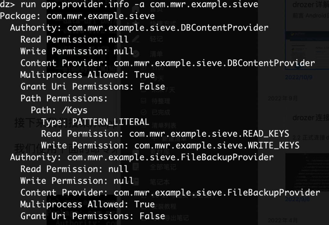 1. 数据泄露 执行run app.provider.info -a 包名,列出可被导出的provider