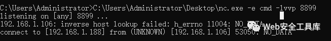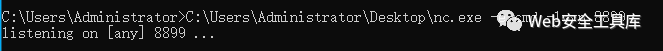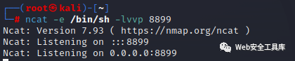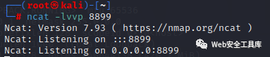 3、执行下面命令,监听任意来自8899端口的数据,等待服务器来连接