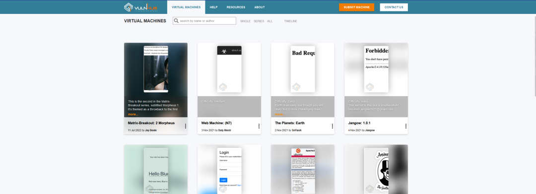 而且不仅仅局限于vulnhub平台上的靶机,还将会涉及如下几个靶机平台: