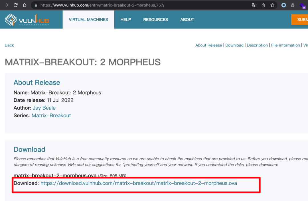 在首页检索或选择相关靶机,会直接跳转下载链接