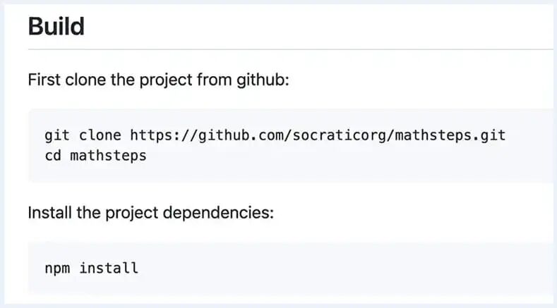 在Google的库例子中,"Mathsteps"项目指向属于Socratic的GitHub库。Socratic是谷歌收购的一家公司。攻击者可以克隆库来破坏重定向,用户根据readme文件指示会从恶意库中下载恶意代码。由于readme文件中包含npm install 依赖命令,攻击者的代码可以在受害者设备上实现任意代码执行。