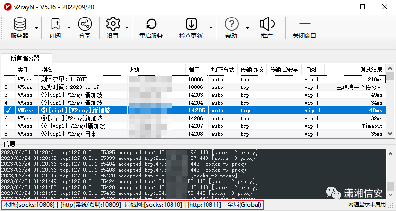 打开v2rayN客户端在状态栏查看socks/http代理端口,代理节点大家自己准备。