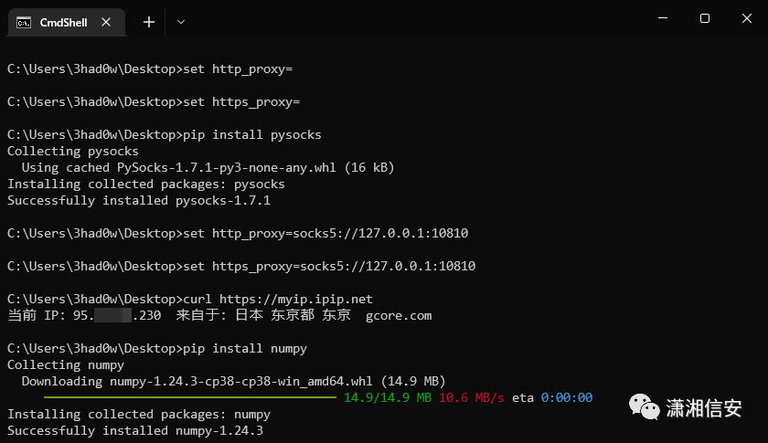 pip install pysocksset http_proxy=socks5://127.0.0.1:10810 //Windowsset https_proxy=socks5://127.0.0.1:10810 //Windowsexport http_proxy=socks5://127.0.0.1:10810 //Linuxexport https_proxy=socks5://127.0.0.1:10810 //Linux