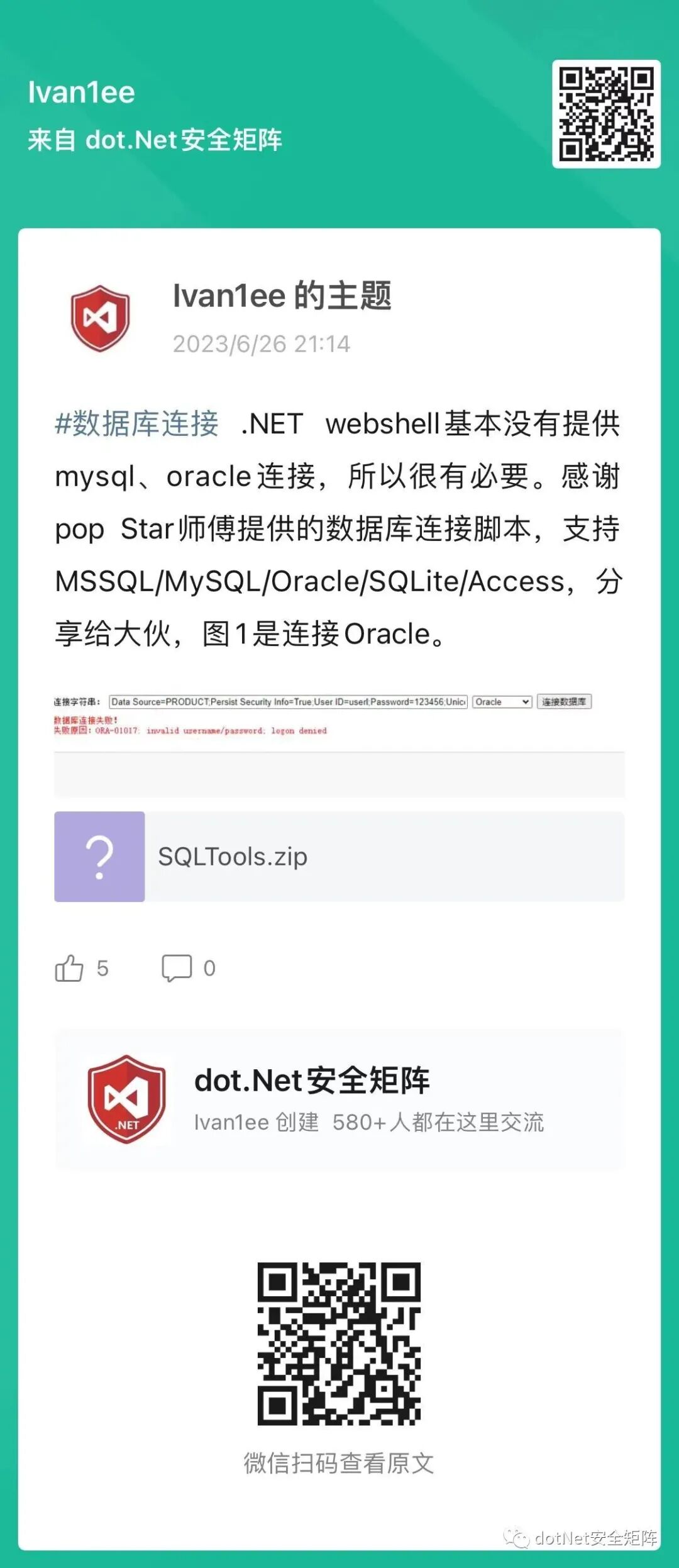 dotNet安全矩阵知识星球 — 聚焦于微软.NET安全技术,关注基于.NET衍生出的各种红蓝攻防对抗技术、分享内容不限于 .NET代码审计、 最新的.NET漏洞分析、反序列化漏洞研究、有趣的.NET安全Trick、.NET开源软件分享、. NET生态等热点话题、还可以获得阿里、蚂蚁、字节等大厂内推的机会.