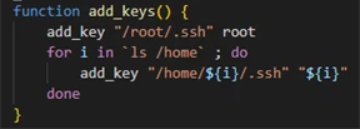 为了保证对设备的持久SSH访问,后门会在系统上所有用户的authorized_keys配置文件中附加两个公钥。