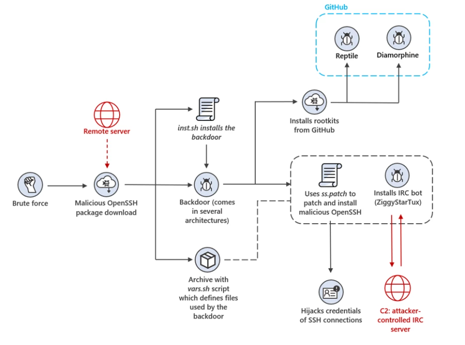 参考及来源:https://www.microsoft.com/en-us/security/blog/2023/06/22/iot-devices-and-linux-based-systems-targeted-by-openssh-trojan-campaign/