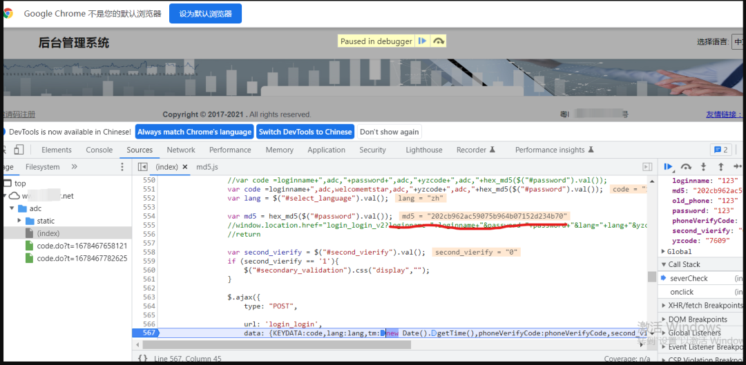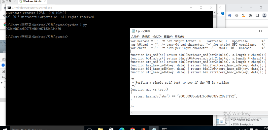 比较幸运,这个站的加密方法,他直接就是个md5.js文件,运行结果与我们抓包得到的一致