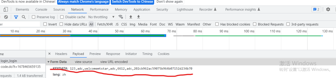 例如:在一个后台登陆页面,我们随便输入点击登录后在调试器的网络里查看POST请求时发现了可疑函数keydata