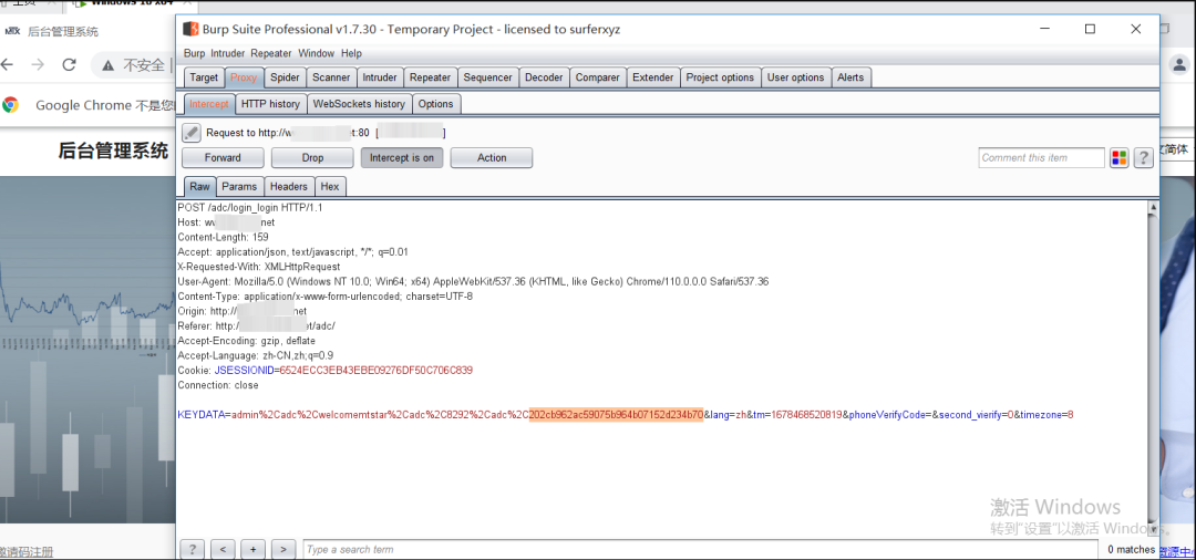 但是当我们抓包后发现密码是经过加密后的,我们没有加密后的字典,更何况我们也不清楚它的加密方法
