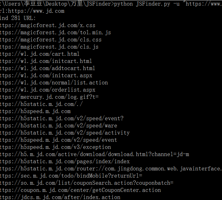 5.使用JSfind工具获取 JS中泄露的URL链接和域名