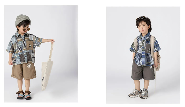 短裤的长短也很合适,在膝盖上方,凉爽舒适又不会有着凉的风险。这套简约时尚不复杂。相比那些很浮夸的图案,这种会更耐看,小朋友也不会不喜欢。