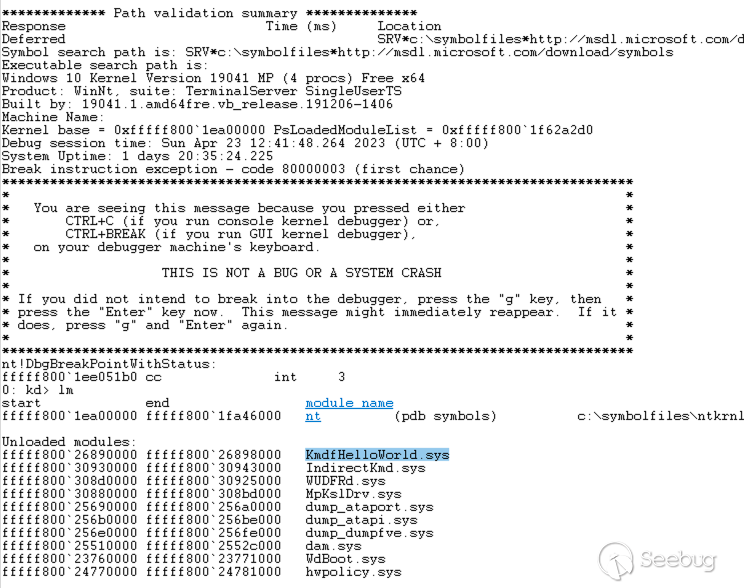 KdPrintEx((DPFLTR_IHVDRIVER_ID, DPFLTR_INFO_LEVEL, "KmdfHelloWorld: DriverEntry\n"));