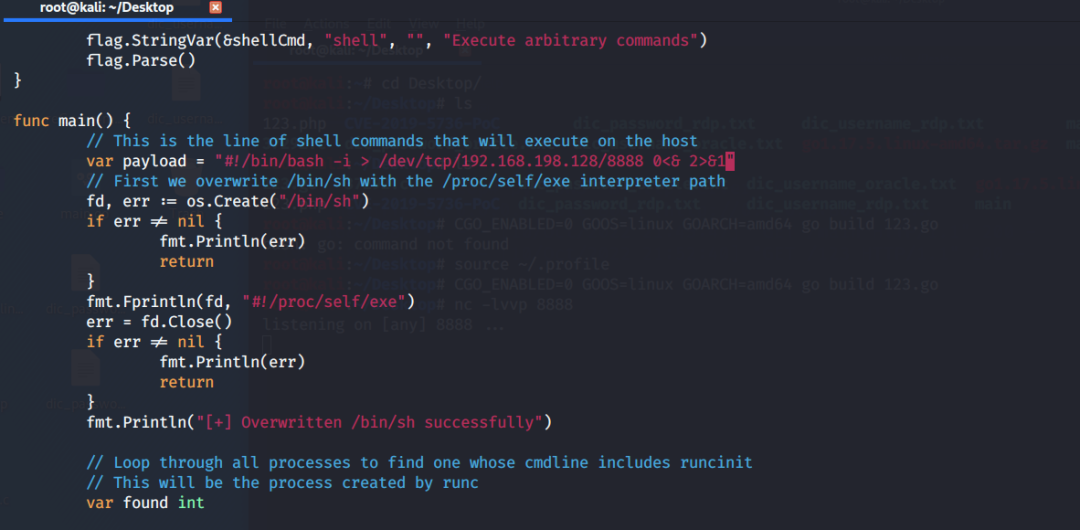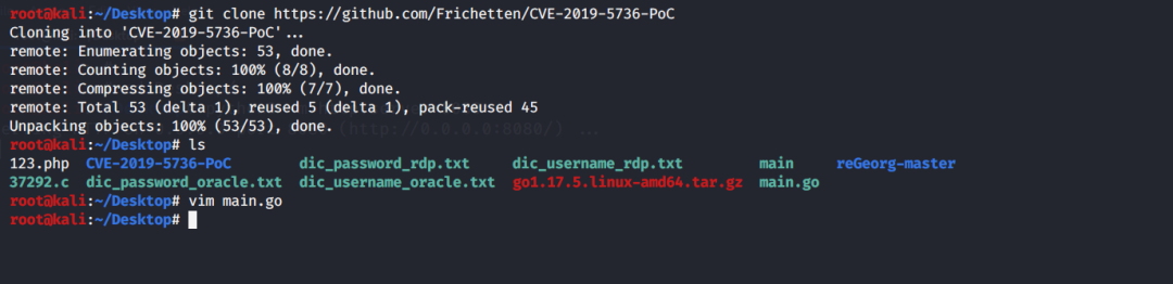 git clone https://github.com/Frichetten/CVE-2019-5736-PoC 修改payload为反弹shell