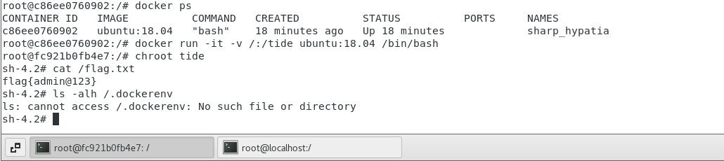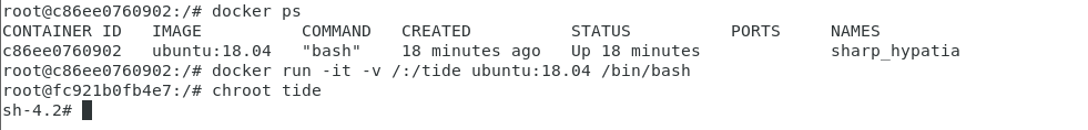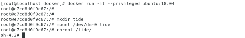 如果在docker启动的时候挂载了宿主机的根目录,就可以通过chroot获取宿主机的权限docker run -it -v /:/tide/ ubuntu:18.04