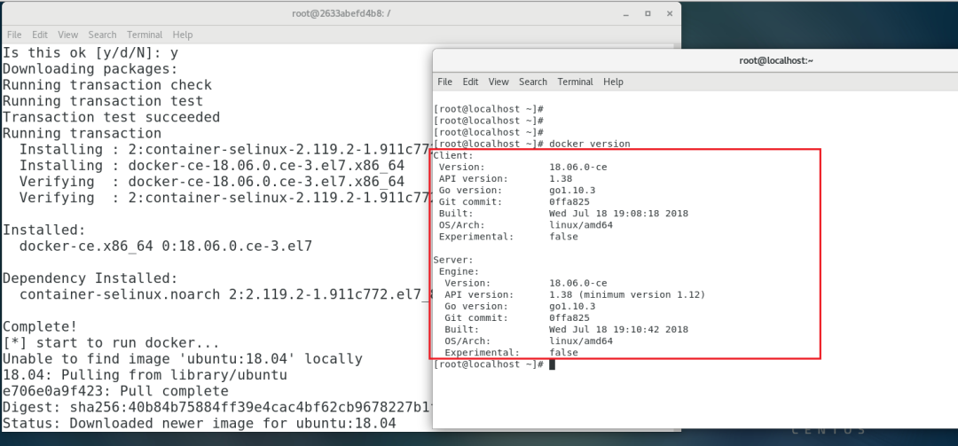 docker version <=18.09.2 RunC version <=1.0-rc6在部署该环境时,需要先将之前系统上所安装的docker卸载掉安装18.06版本的docker,我这里直接恢复了还没安装docker时的快照,故直接安装即可。