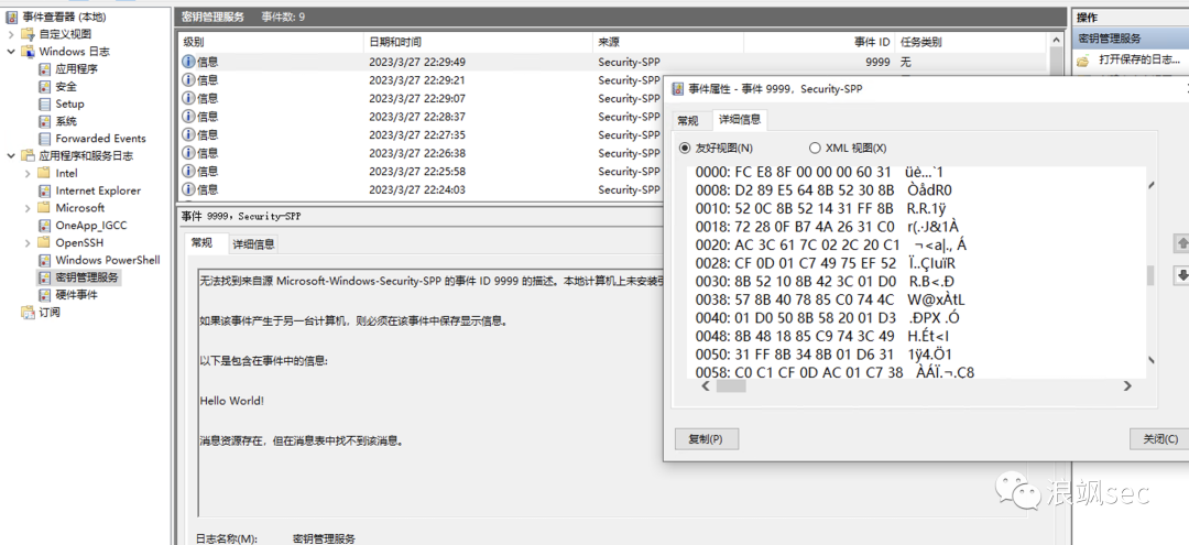 只需在Write-EventLog中使用-RawData参数,就可以在事件日志字段中包含二进制数据,而且必须将二进制数据作为字节数组传到-RawData参数中。我们可以将其包含数据的十六进制字符串转换为字节数组,然后再传递。