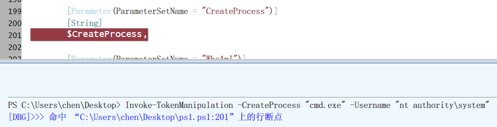 这里打断点对Invoke-TokenManipulation.ps1进行分析:
