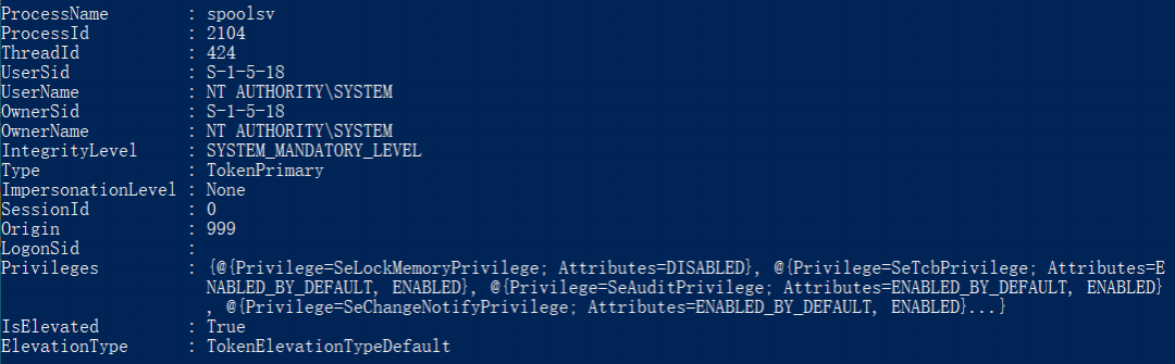 新发现:不是所有的SYSTEM权限运行的进程都被窃取,主要有两个结构标识:TOKEN_USER和 TOKEN_OWNER,OWNER结构标识用户是使用访问令牌创建的任何进程的所有者,当该标识符是SYSTEM的时候但我们当前的权限并不是SYSTEM是无法窃取的,如winlogon.exe可利用而spoolsv.exe不可利用: