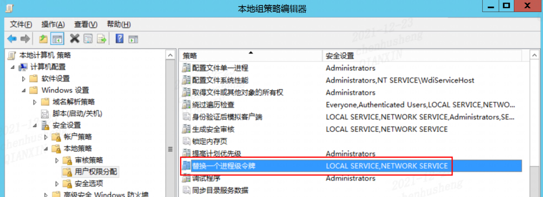 2) 限制谁可以通过 GPO 创建仅本地和网络服务的进程级令牌:计算机配置 > [策略] > Windows 设置 > 安全设置 > 本地策略 > 用户权限分配:替换进程级令牌。