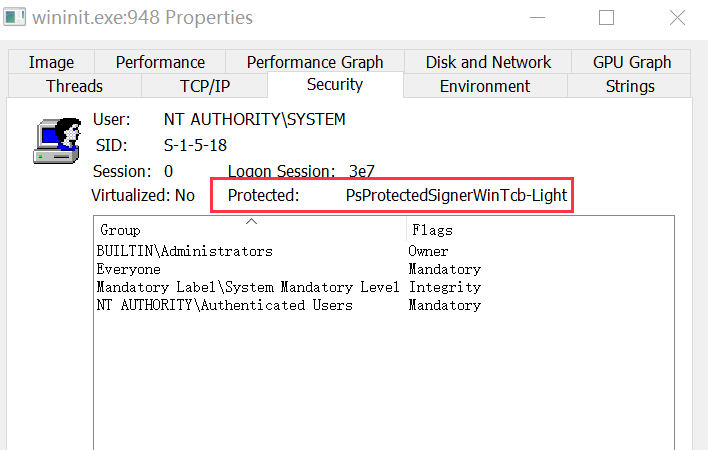 结果还是有一些SYSTEM进程不可被窃取,通过Process Explorer可以发现了一个导致此行为的常见属性:PsProtectedSignerWinTcb-Light(PPL),此时需要使用PROCESS_QUERY_LIMITED_INFORMATION权限标记才能进行窃取令牌操作: