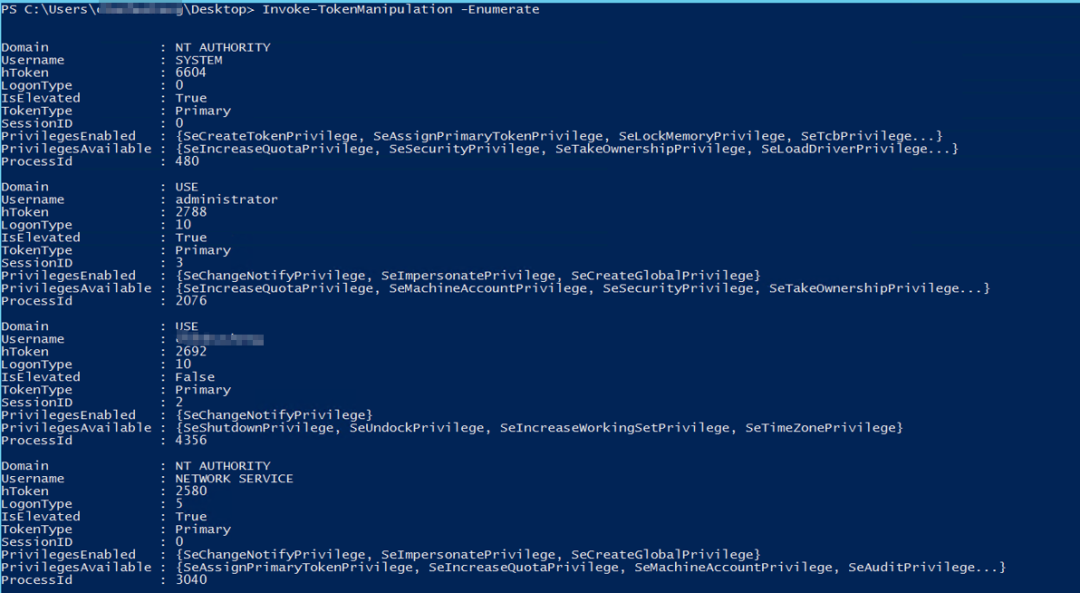 2.使用Invoke-TokenManipulation.ps1窃取用户令牌
