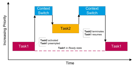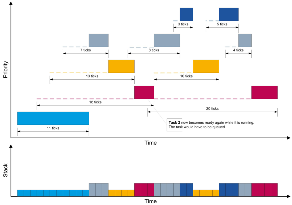 为了更好的利用OS 来压榨硬件资源,大部分的任务都会被设计成抢占式任务。一般的原则,重要的任务优先级高,需要运行时间较短的任务优先级高。