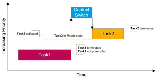 这里可以看出,当任务被设定为非抢占的时候,当任务没有完成时,即使高优先级的任务到来,也无法将其抢占。