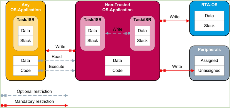 内存保护的机制通过os-application 的 trust 和 non-trust 进行隔离开。