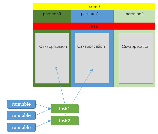 区别于rtos, 这里有调度表,属于静态配置的调度器。可以说是一系列的event的组合。
