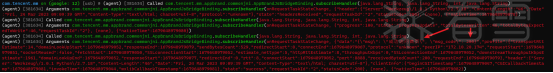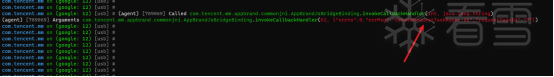 发现他们在一起,通过第一处调用的上一行的log可以看出,不验证白名单的domains都会走这里,正常的微信小程序都会开启这个验证,所以第二处才是跟服务器发起交互的函数调用,这样就找到了wx.request发送的函数调用,因为我们不止要获取发送的数据,还要获取服务器响应的数据,所以还得分析wx.request callback在java层对应的实现,具体的callback的实现是在so层,由于时间关系就懒得跟了,这里告诉大家一个简单的获取响应的数据的方法,前面说过wx.xx的api都要通过WxJsApiBridge做桥接实现跟java层方法的调用,这样的话可不可以直接hook com.tencent.mm.appbrand.commonjni.AppBrandJsBridgeBinding这个类的接受订阅消息的方法来得到响应的数据呢?答案是可以的,如下所示: