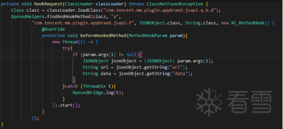 Xposed hook wx.request java层代码得到发送的数据实现如下所示: